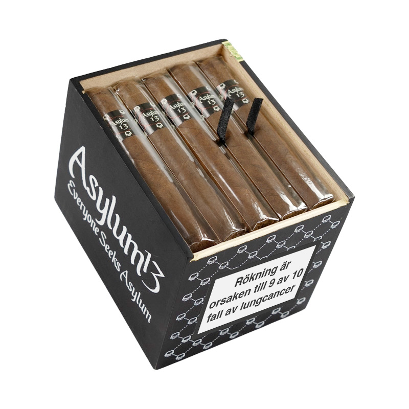 Asylum 13 är en serie genuina ”Puros” från Nicaragua där mörka täckblad av Habano typ omsluter en inlaga utvald vällagrad tobak driven från kubanska fröer odlad på Nicaraguas svarta vulkaniska jordar.