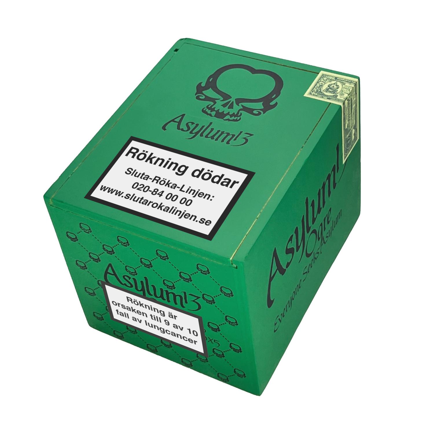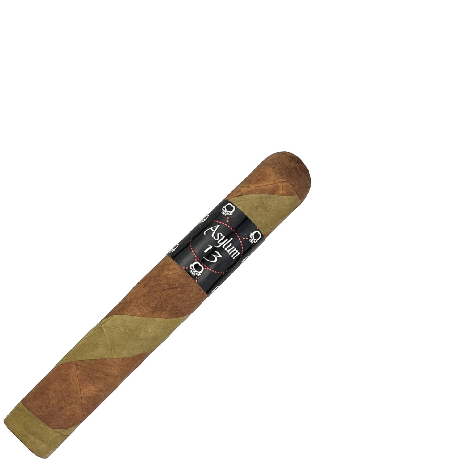 Asylum 13 Ogre är iögonfallande, där det första du kommer att lägga märke till är täckbladet. Täckbladet består av två blad som går omlott, så kallad Baber Pole rullad med ett Candela och ett Habano maduro. I övrigt är cigarren en nicaraguansk puro med 100% nicaraguansk tobak. Smakprofilen är fylling och bjuder på smaker som kola, nötter och espresso.