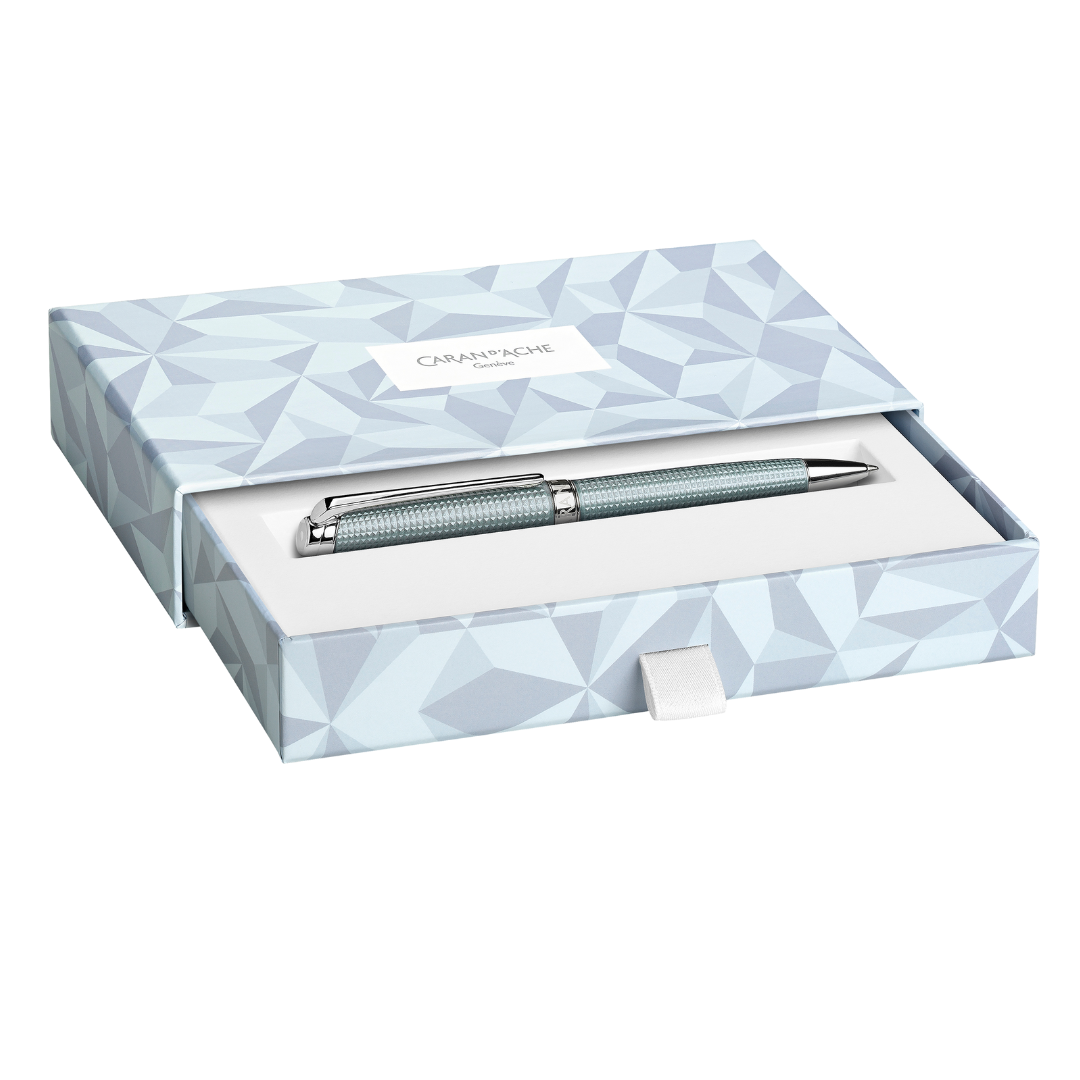 Léman™ Alpine Frost är en exklusiv hyllning till vinterns skönhet. Pennan är inspirerad av frusna sjöar och snötäckta bergstoppar, och pryds av den klassiska clou de Paris-graveringen som elegant återspeglar alpina reliefmönster.