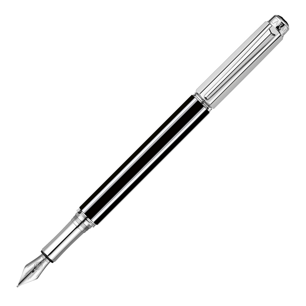 Pennkroppen i mässing är klädd i det svarta kinesiska lacket, vilket skapar en taktil och visuell upplevelse utöver det vanliga. Det kompletteras av rodium- och silverpläterade detaljer, inklusive en fjäderbelastat klips.