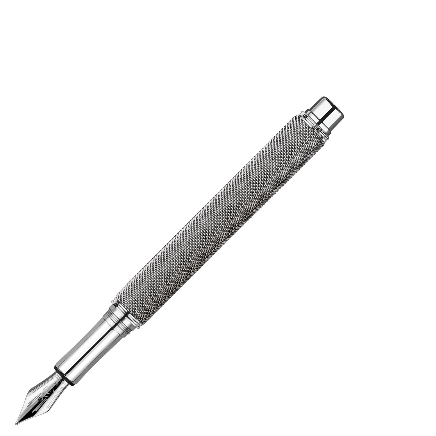 - Pennans kropp i mässing är klädd i ett yttre lager av finvävd brynja (coat of mail) i rostfritt stål. Detta ger pennan en särpräglad taktil upplevelse och en slående visuell karaktär.