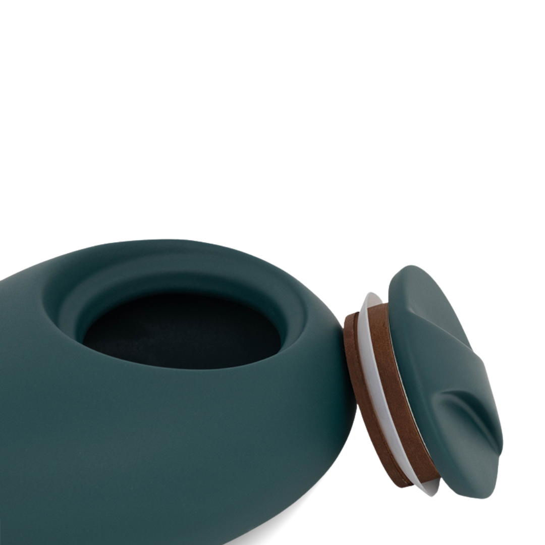 Tobakskrukan har fått sin form med inspiration från stenar och har ett gummiförseglat lock och en luftfuktare som säkerställer bättre konservering av din tobak.