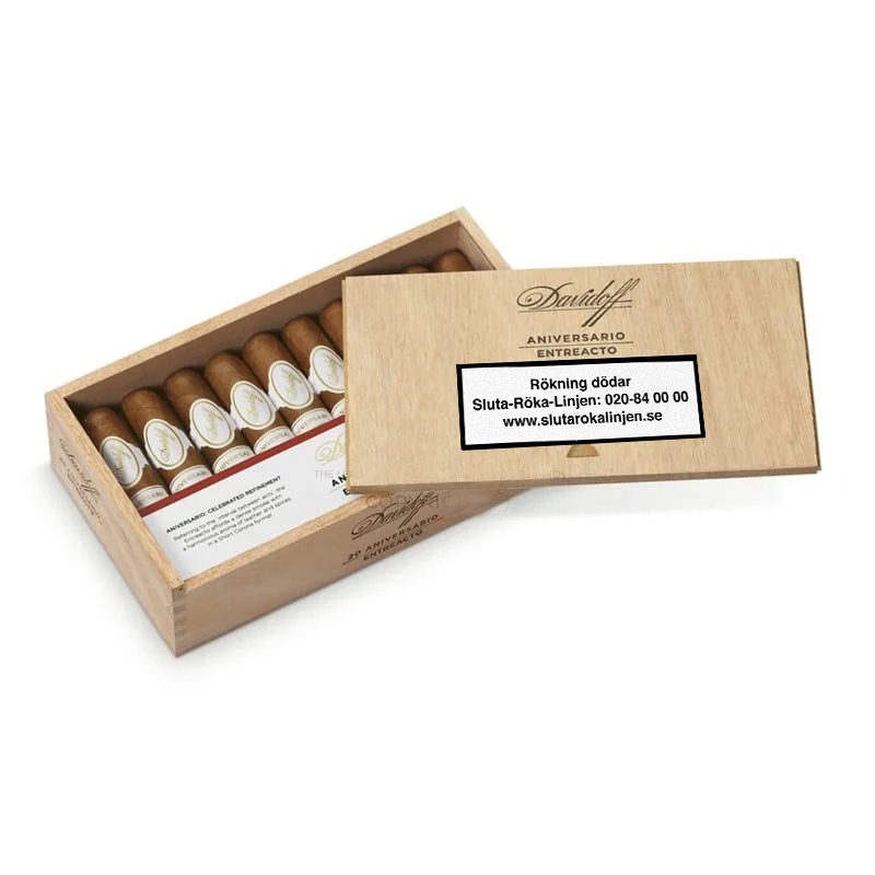 Förpackning: Styck, pappask med 4 st cigarrer, trälåda med 20 st cigarrer.