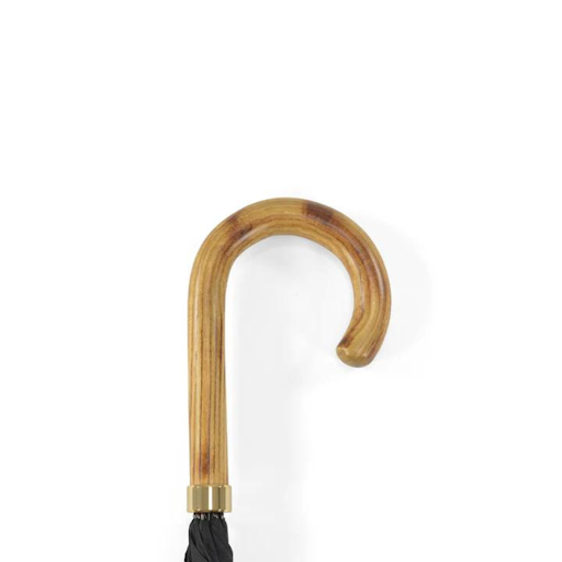 Paraplyet har ett handtag av ask. Tillverkad på en 25 tums 8-ribbad svart stålrörsram med en förgylld spetskopp.