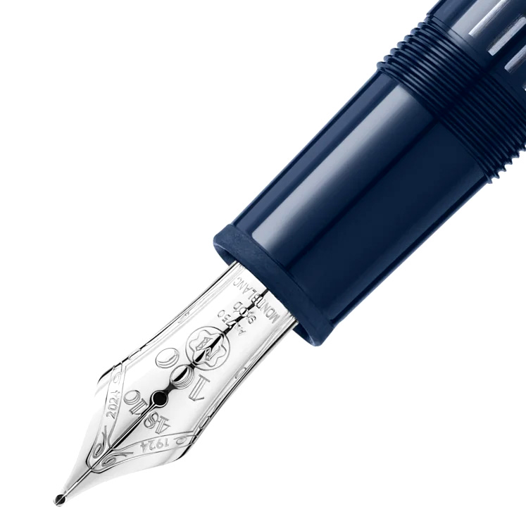 Meisterstück Origin firar 100 år av Montblancs ikoniska skrivinstrument. Inspirerad av tidiga arkivdesigner kombinerar denna penna historiska detaljer med modern elegans. Pennans blålackerade och platinerade huv bär ett intrikat mönster från en länge gömd Art Déco-design, medan klipsen hyllar de första Meisterstück-modellerna. Den rhodiumbelagda spetsen pryds av siffran 100 samt åren 1924 och 2024 – en hyllning till ett sekel av hantverk och innovation.