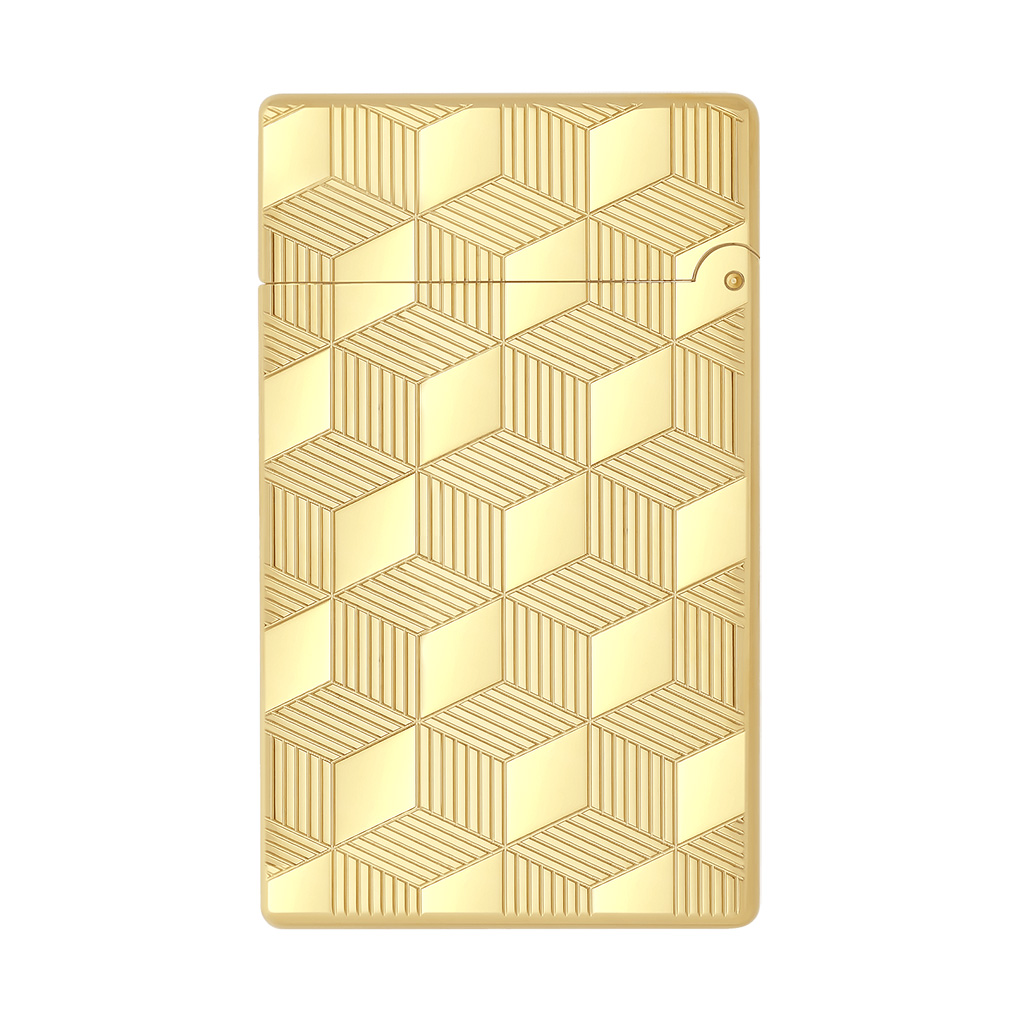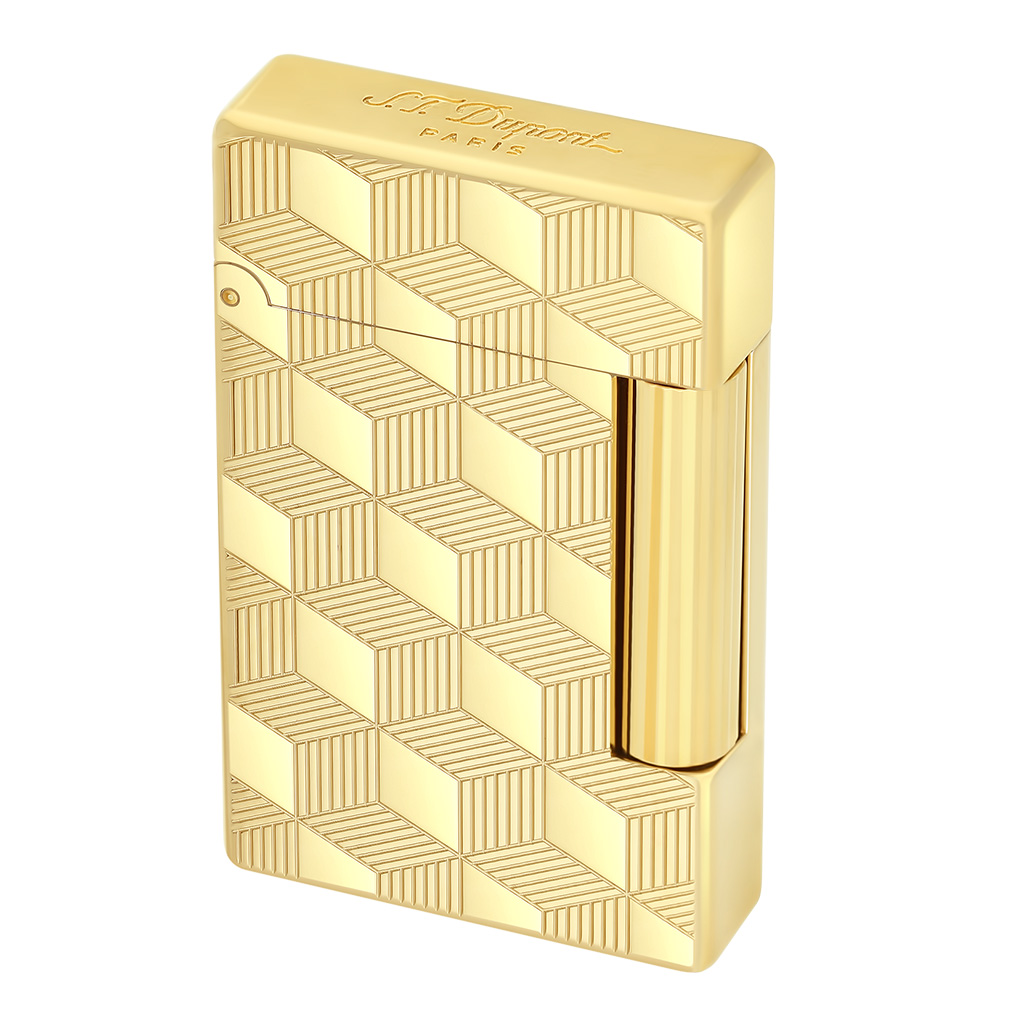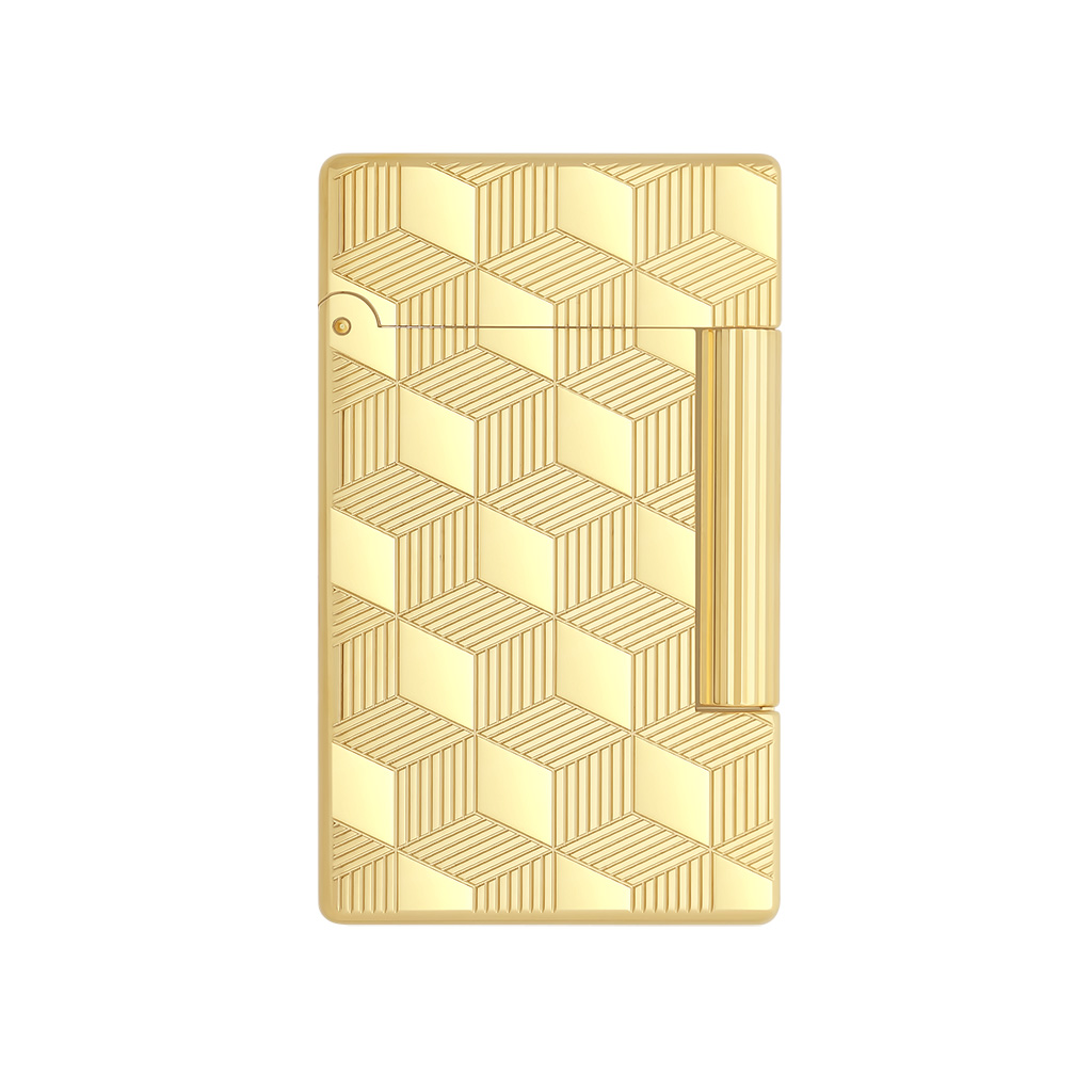 En klassisk softflame flinttändare från S.T. Dupont med guillochemönster. Tändaren har en extra bred dubbellåga.